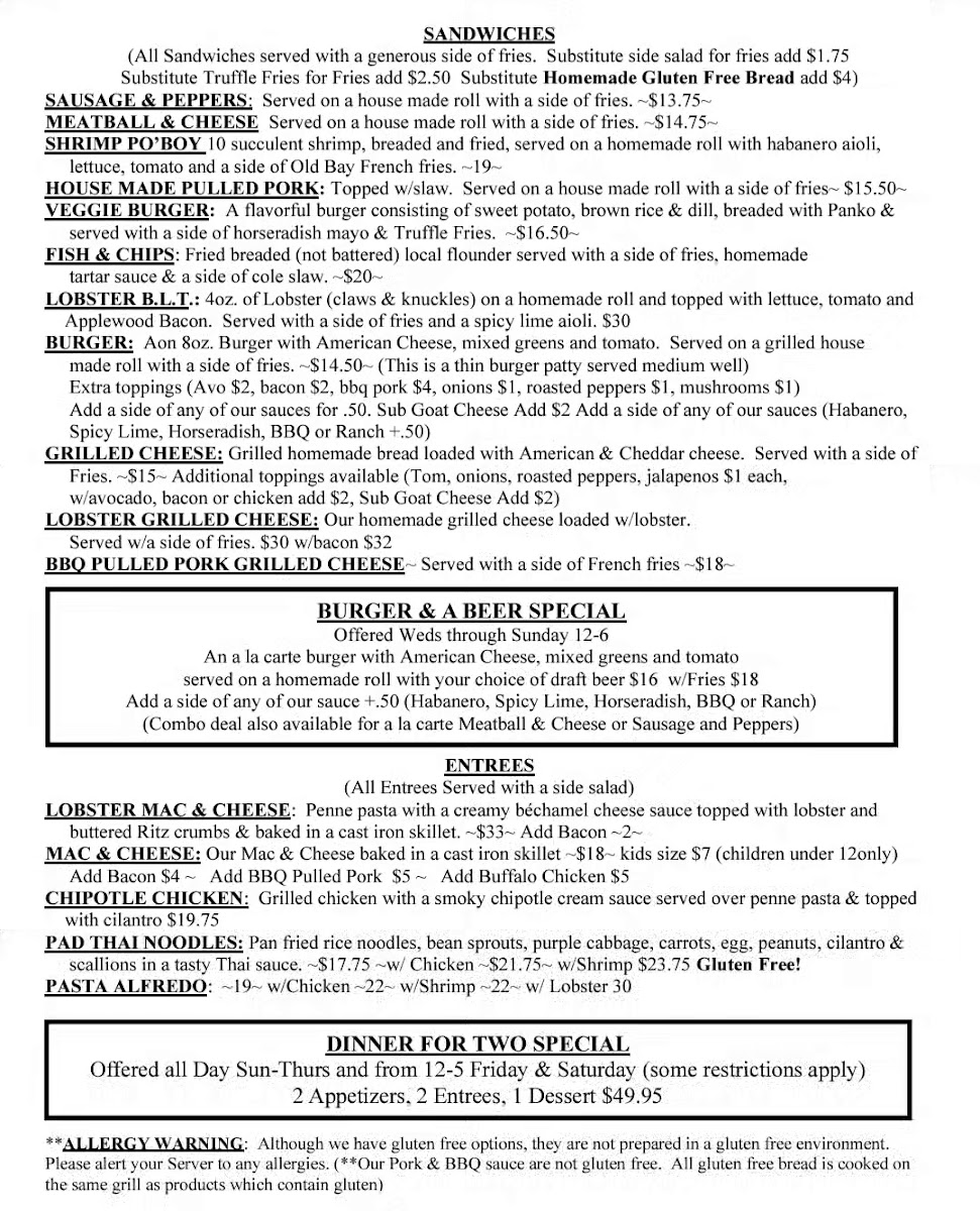 “ Got the salmon tacos, they were sooo good! Their cole slaw is great too! Very cool bike decorations inside, everything on the menu looked good! Great beer selection too! Looking forward to returning sometime! Nice and close to Narragansett Beach! ”